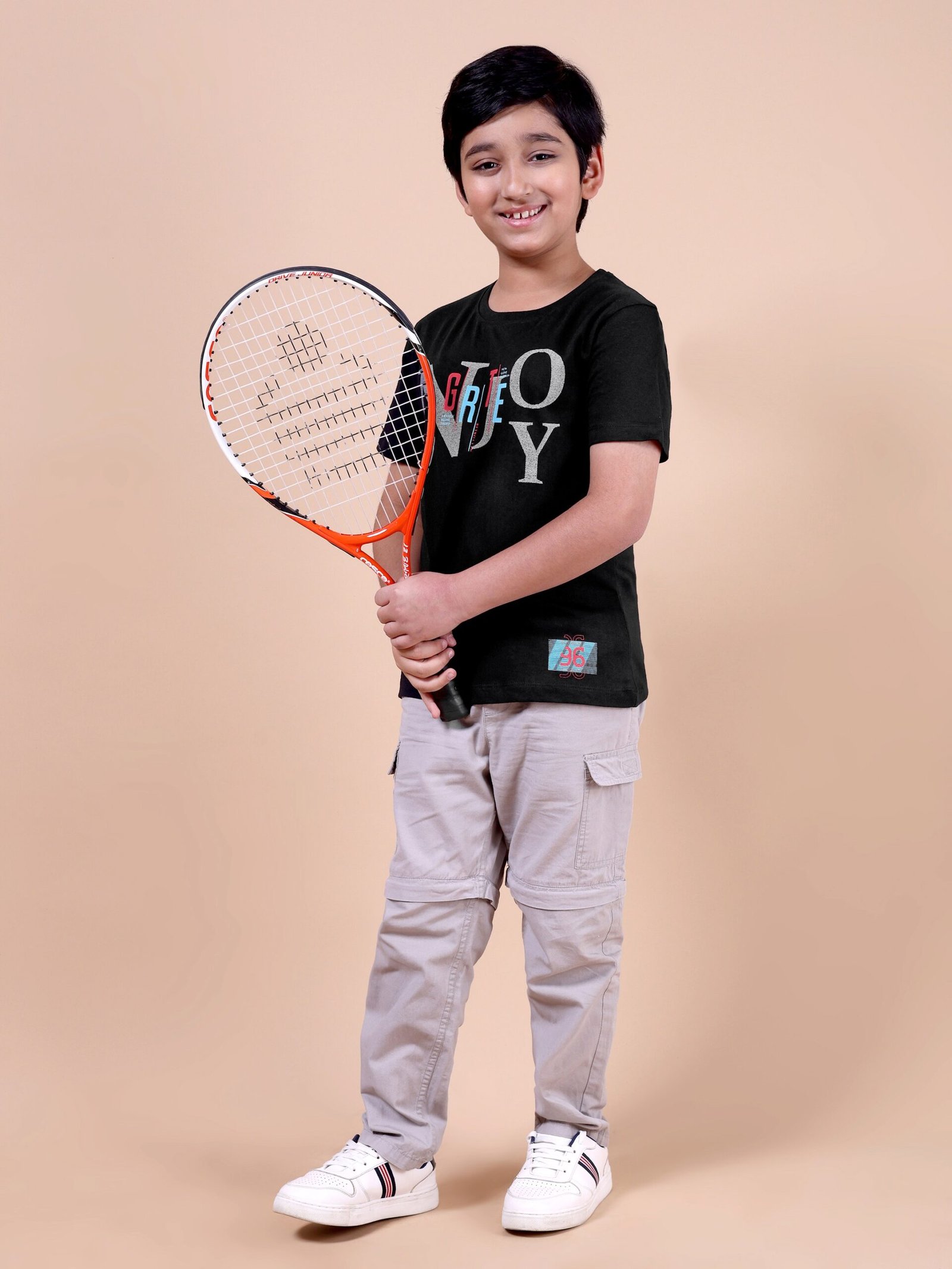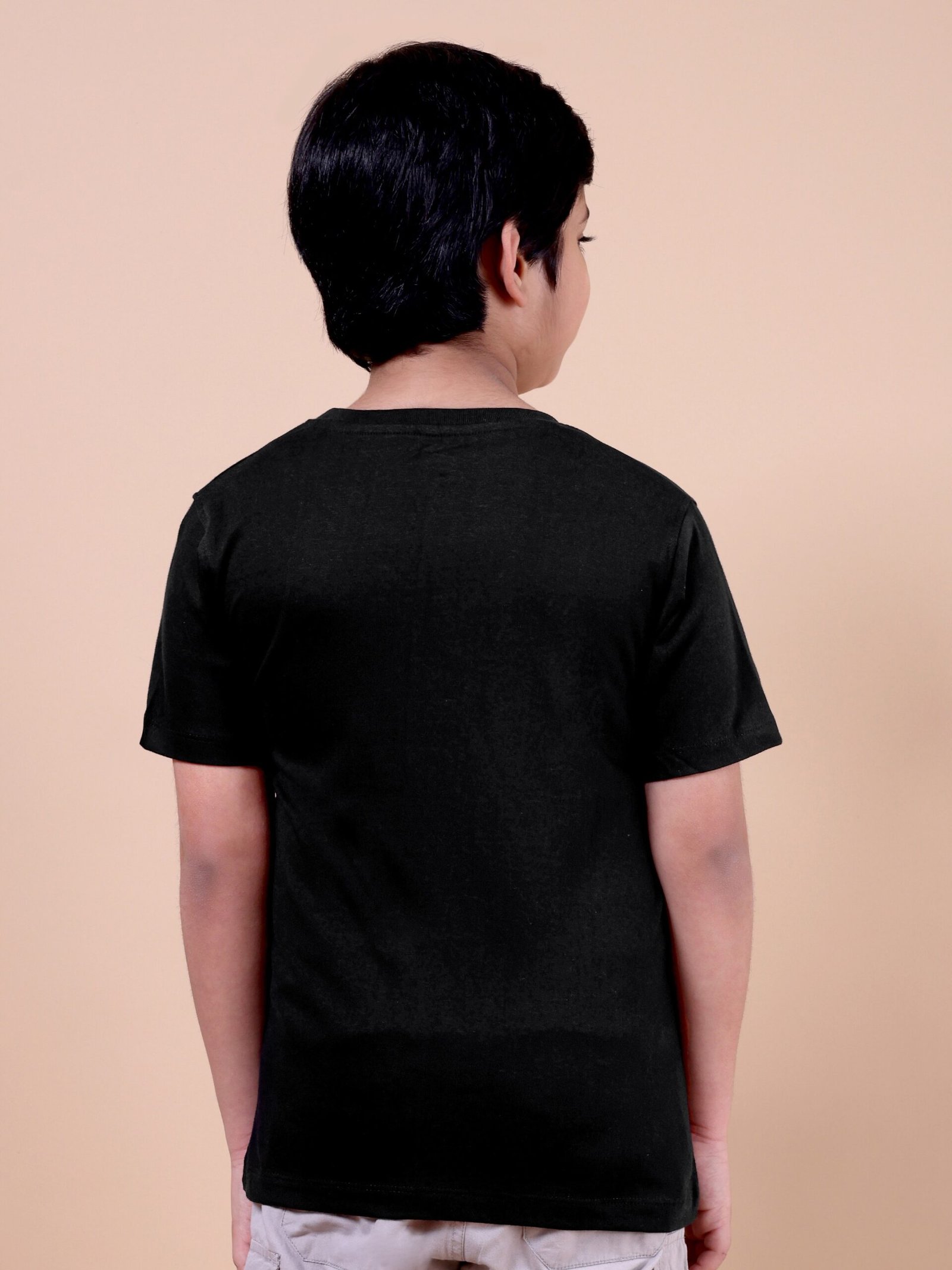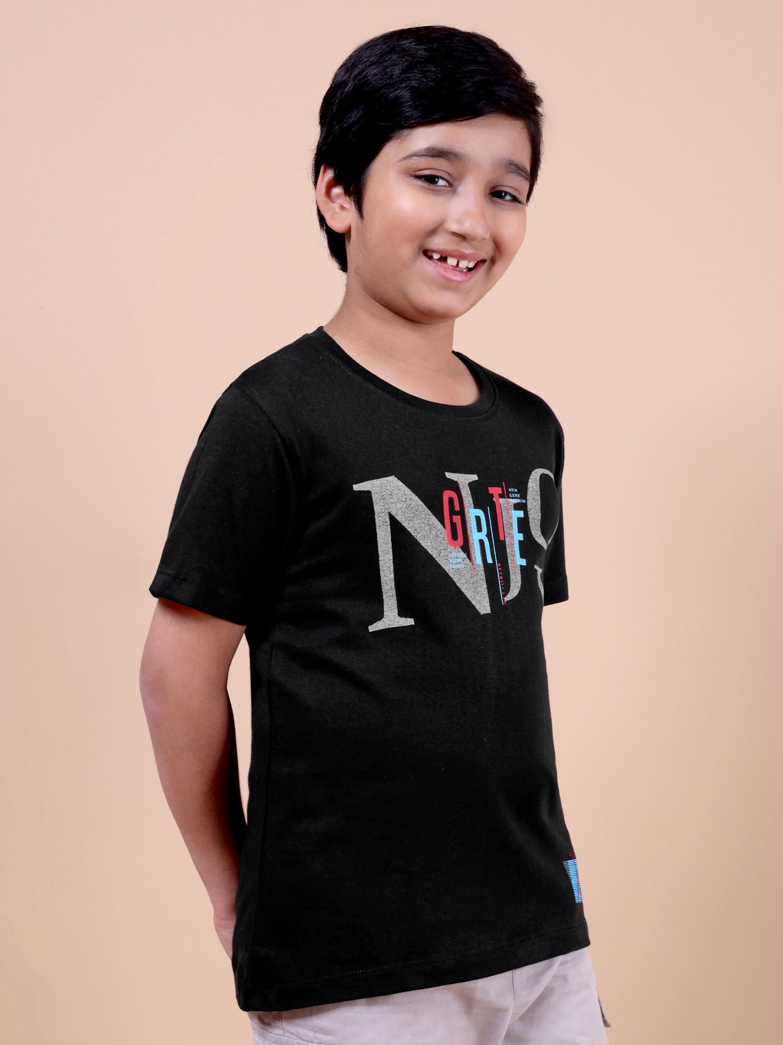 The Classic Black Enjoy T-Shirt is a must-have for boys who love timeless fashion with a playful edge.