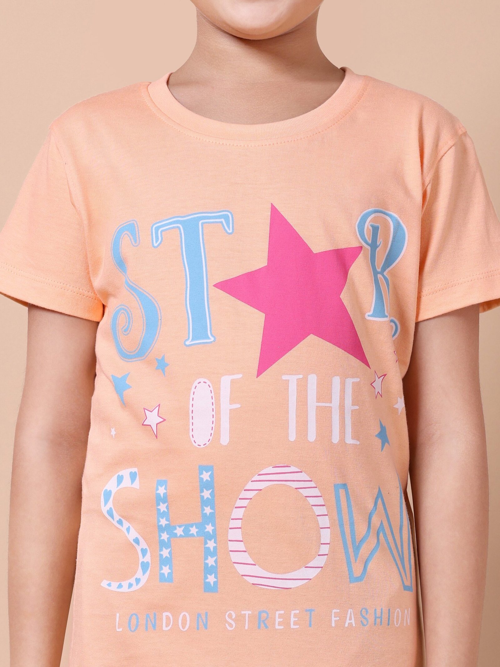 Peach Star Girls’ Printed T-Shirt