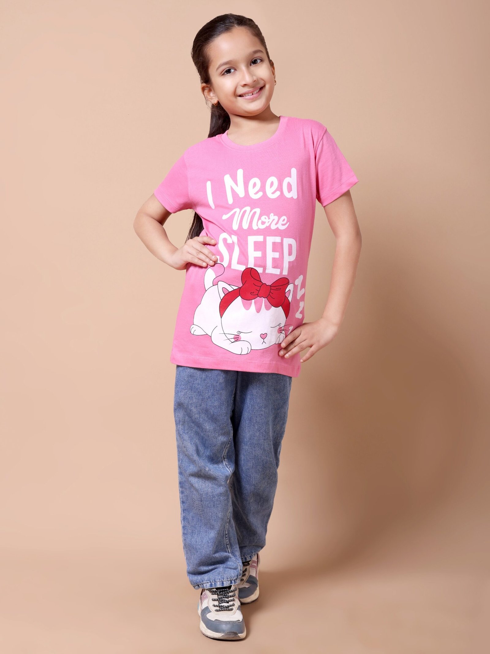 Bring playful charm to your little one’s wardrobe with the Pink Pussy Cat Girls’ Printed T-Shirt. Designed from premium 100% cotton (biowashed), this tee is lightweight, soft, and gentle on the skin, making it ideal for all-day comfort. The cheerful pink colour combined with a cute pussy cat chest print makes it fun, trendy, and perfect for outings, playdates, or relaxed everyday wear.
