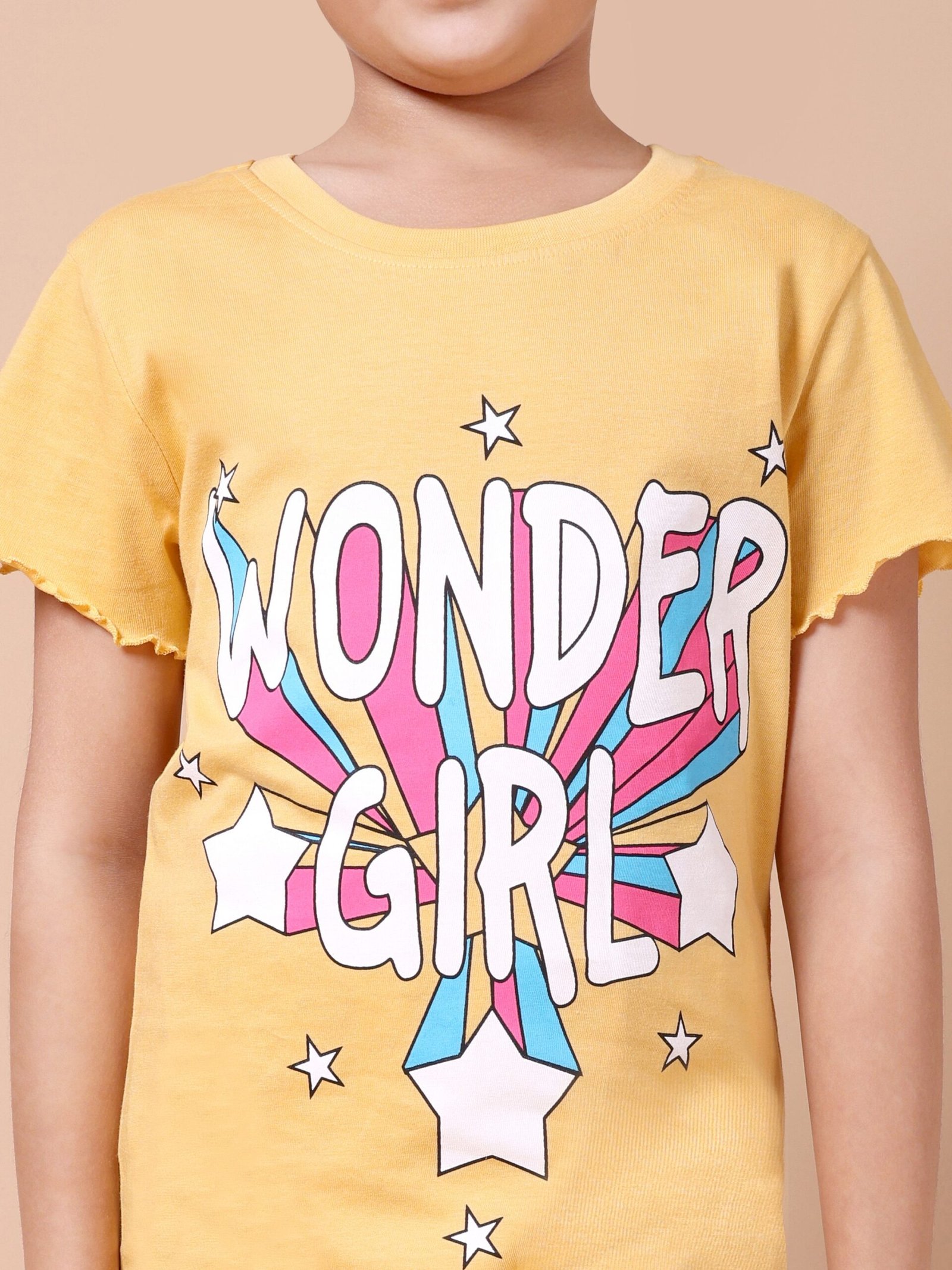 Samoan Sun Yellow Wonder Girl Print Co-ord Set