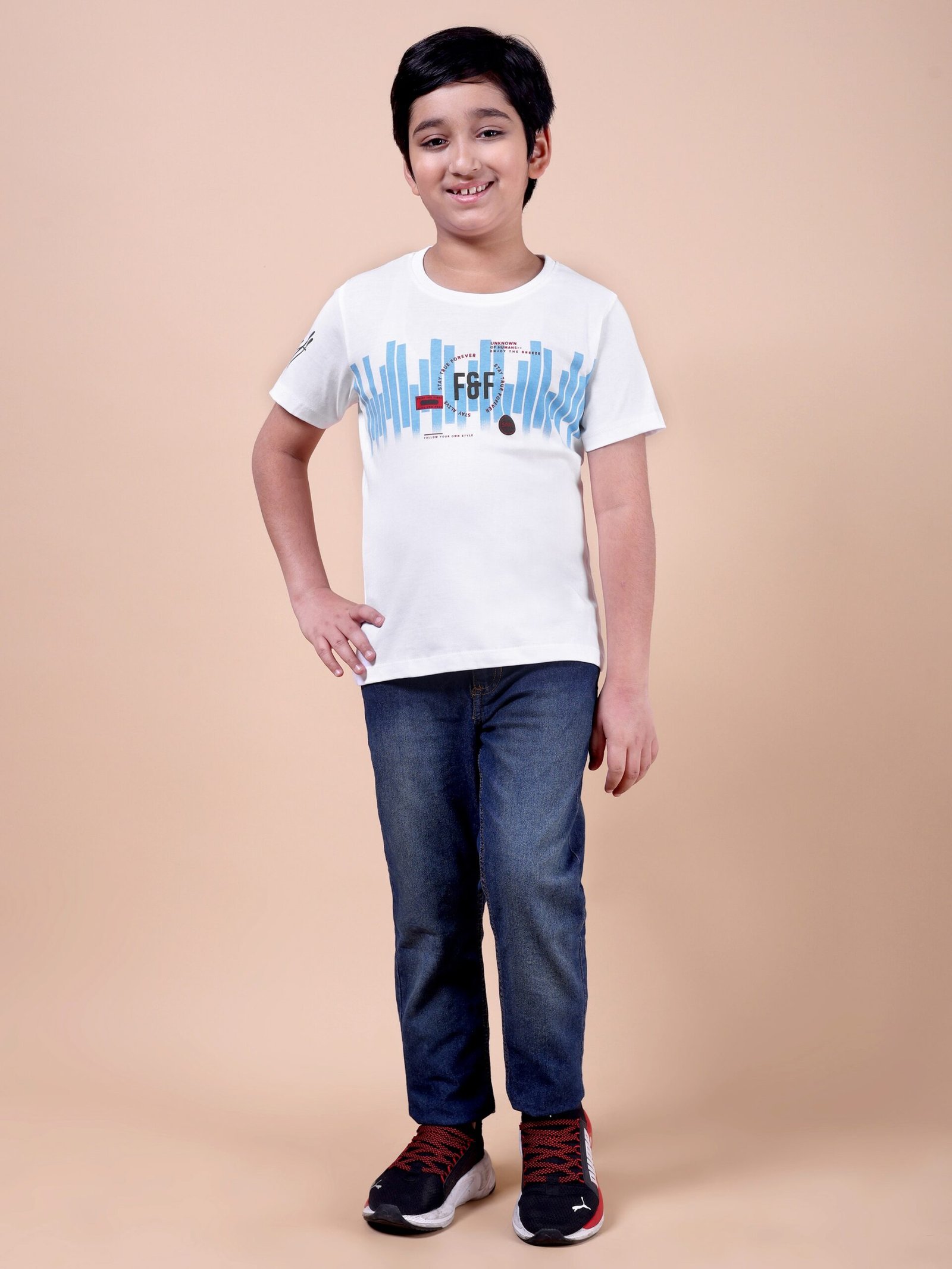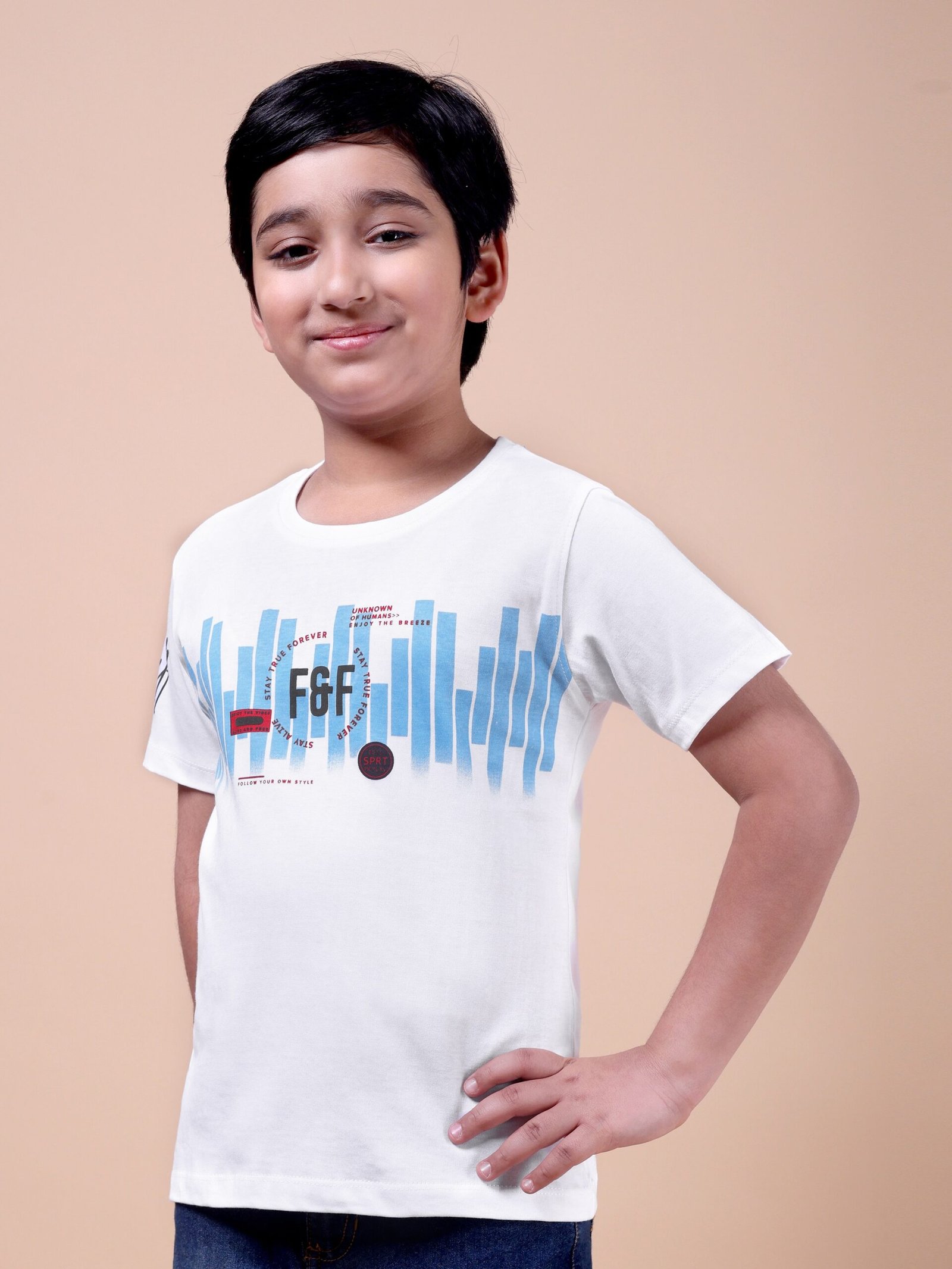 Upgrade your boy’s casual style with the White F&F Boys’ Printed T-Shirt. Crafted from premium 100% cotton (biowashed), this tee is soft, breathable, and gentle on the skin, making it ideal for all-day comfort. The fresh white base is enhanced with a bold blue bar-pattern graphic and F&F chest print, giving it a trendy and sporty vibe suitable for school, outings, or playtime.